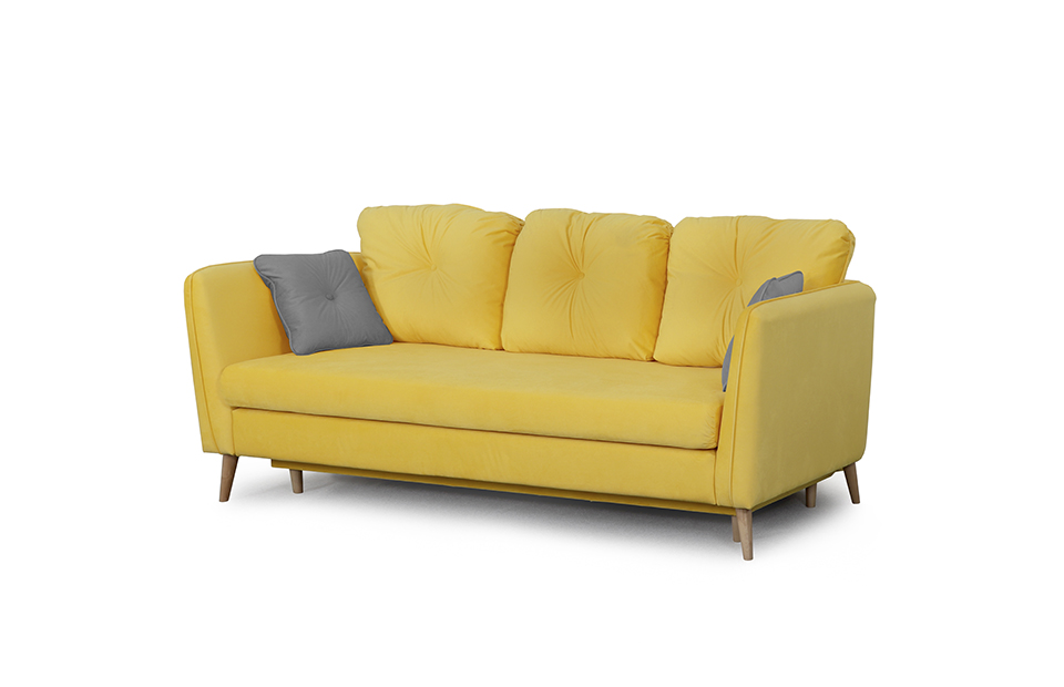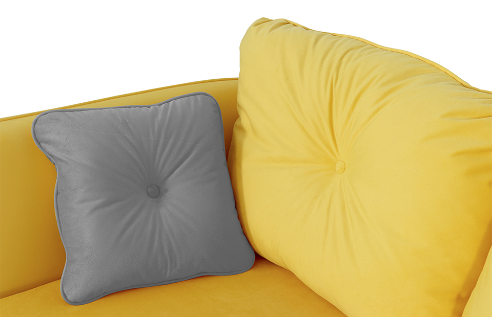Элементы декора: декоративные опоры из натуральной древесины (берёза), декоративная отстрочка, декоративные утяжки с пуговицами на подушках