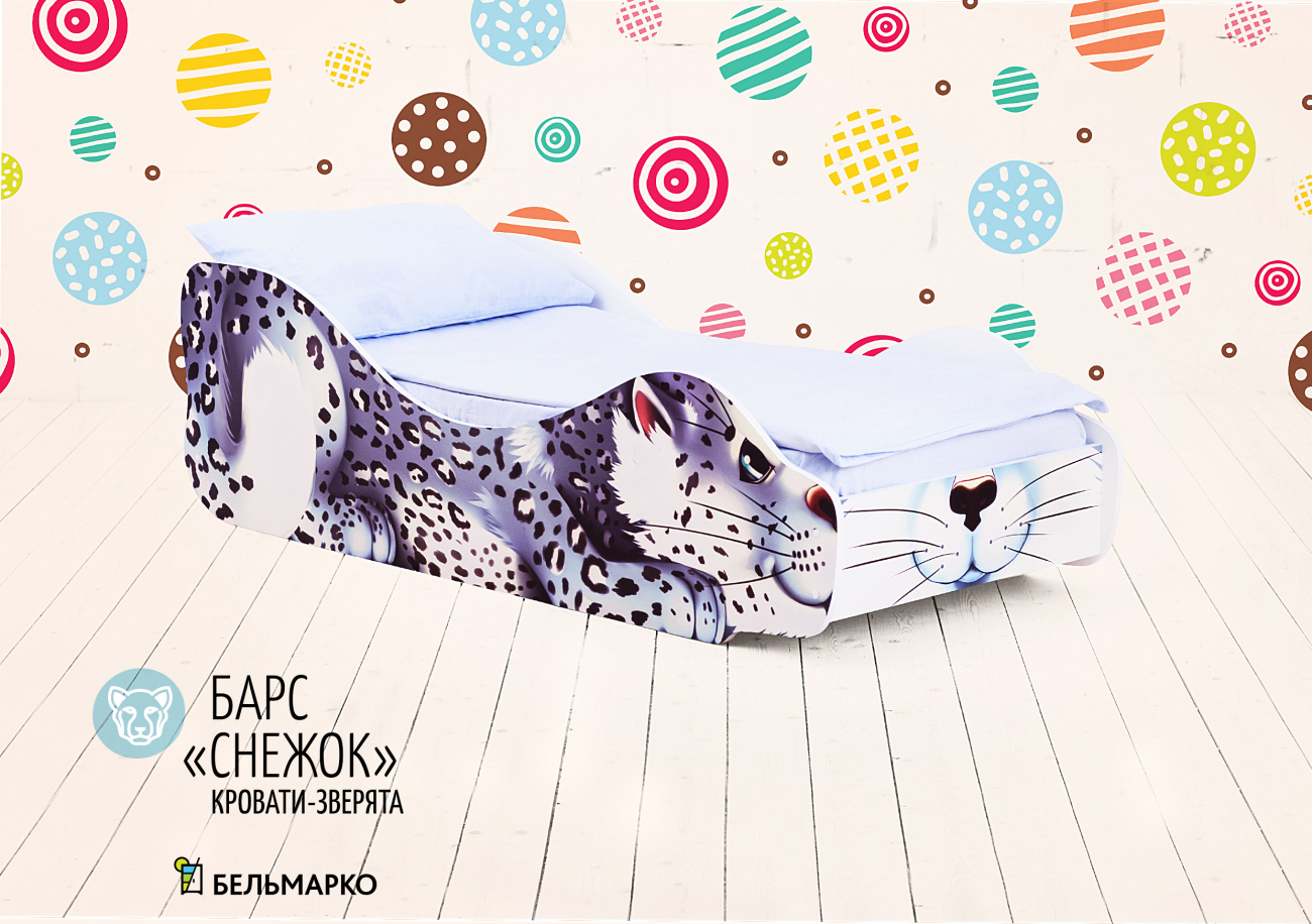 Для детей, которые не хотят видеть скучные сны, наш магазин предлагает кровать БАРС-СНЕЖОК. Чтобы собрать такую кроватку, необходимо прикрепить боковины, на которые нанесен красочный рисунок, к прочному устойчивому основанию. Мы предусмотрели, что удобное спальное место также будет и любимой территорией для игр, поэтому использовали в производстве только качественные и безопасные материалы. Конструкция выдерживает нагрузку до 200 кг, поэтому малыш может смело кувыркаться и прыгать, не боясь, что она сломается. Модель имеет плавные округлые формы, без острых углов, о которые бы мог пораниться малыш, кроме того, все торцы обработаны защитной кромкой из ПВХ. Изображение красивого и очень милого барса будет не один год радовать маленького хозяина, так как оно нанесено методом УФ-печати, что говорит о его устойчивости к истиранию и выгоранию. СНЕЖОК станет верным другом в веселых играх и надежным защитником от страшных снов.