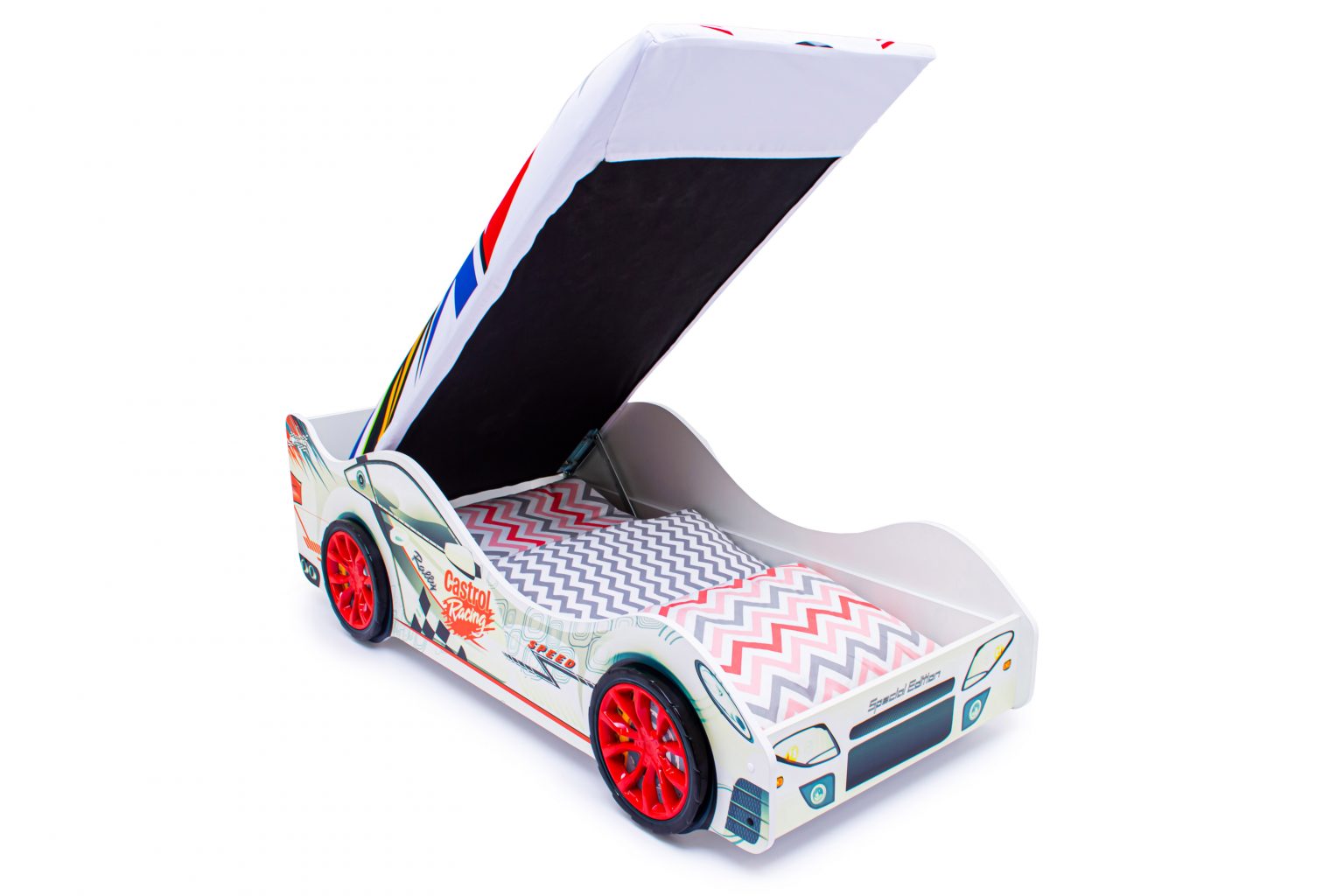 Детская кровать-машина “Безмятежность” с подъемным механизмом станет любимым местом для сна и игр мальчика или девочки от 2 до 10-12 лет.