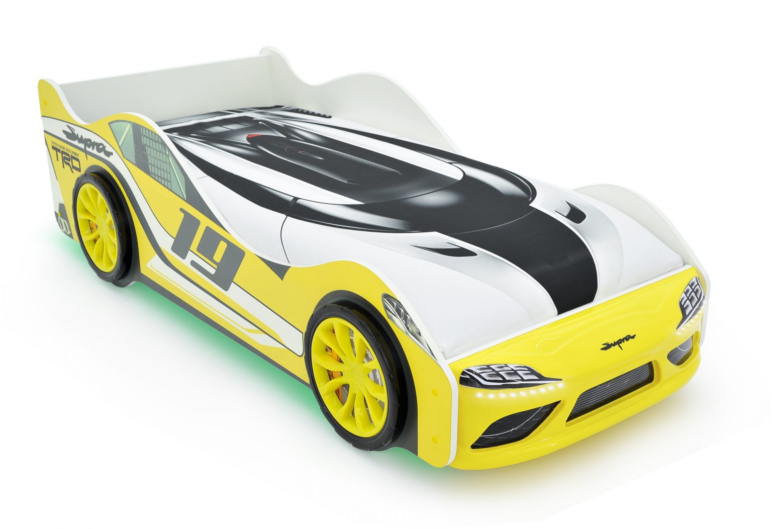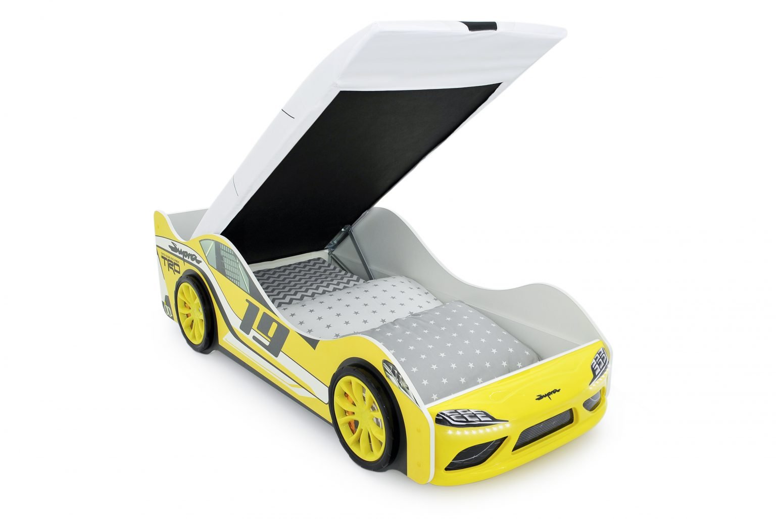 Магазин мебели «100Диванов» предлагает купить Кровать-машина "Супра" желтая с подъемным механизмом и подсветкой фар в Нефтеюганске по выгодным ценам от производителя с доставкой.