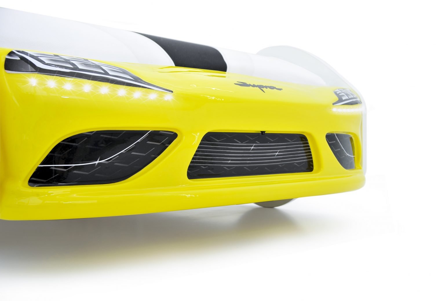Подсветка фар состоит из 18 светодиодов, встроенных в бампер. Работают от двух батареек АА. Включаются и выключаются с помощью кнопки на бампере.