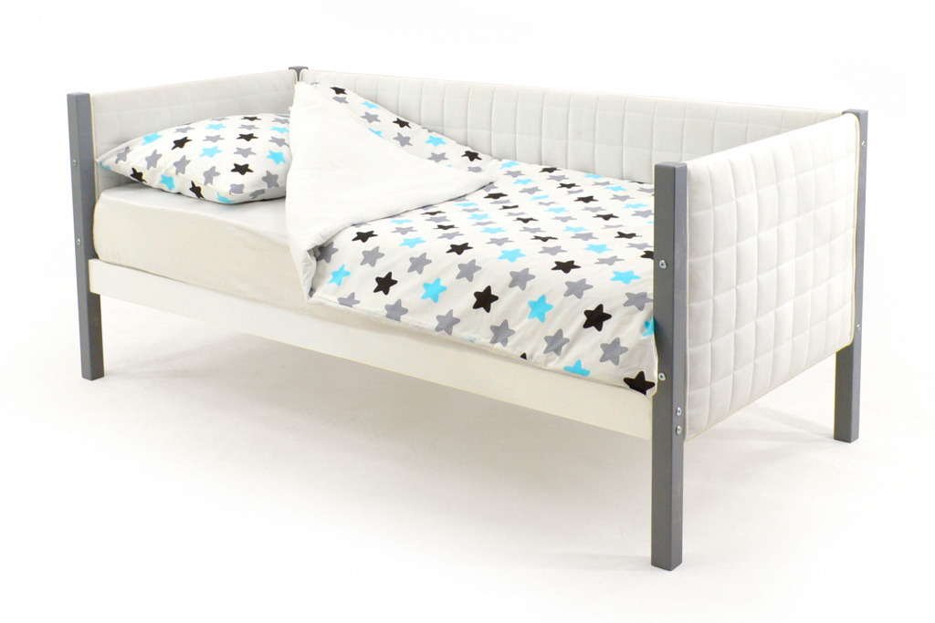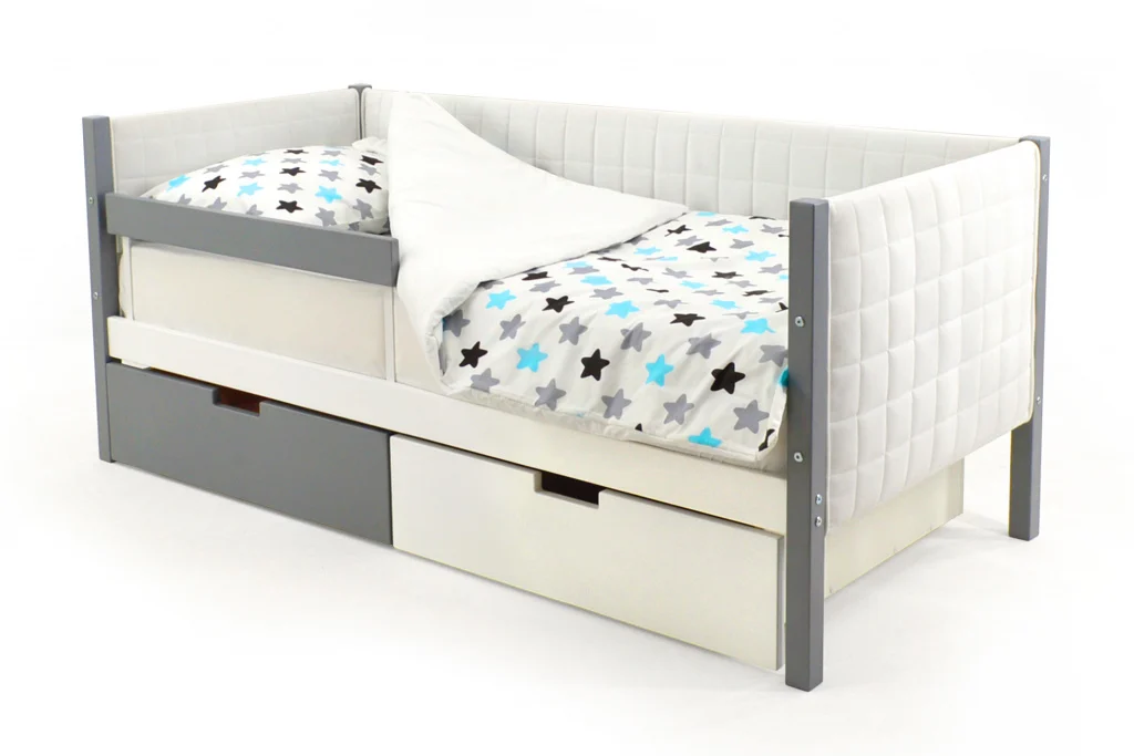 Детская мягкая кровать-тахта Бельмарко “Svogen графит-белый” станет любимым местом для сна и игр мальчика или девочки от 2 до 10-12 лет.