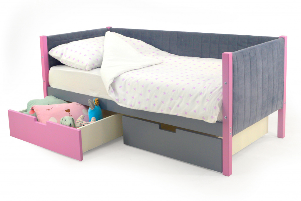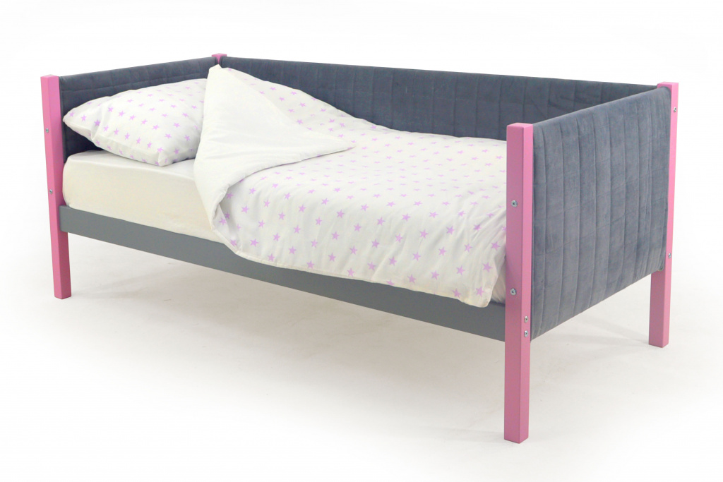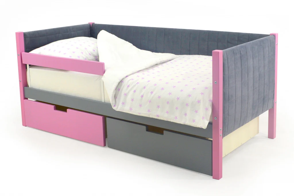 Детская мягкая кровать-тахта Бельмарко “Svogen лаванда-графит” станет любимым местом для сна и игр мальчика или девочки от 2 до 10-12 лет.
