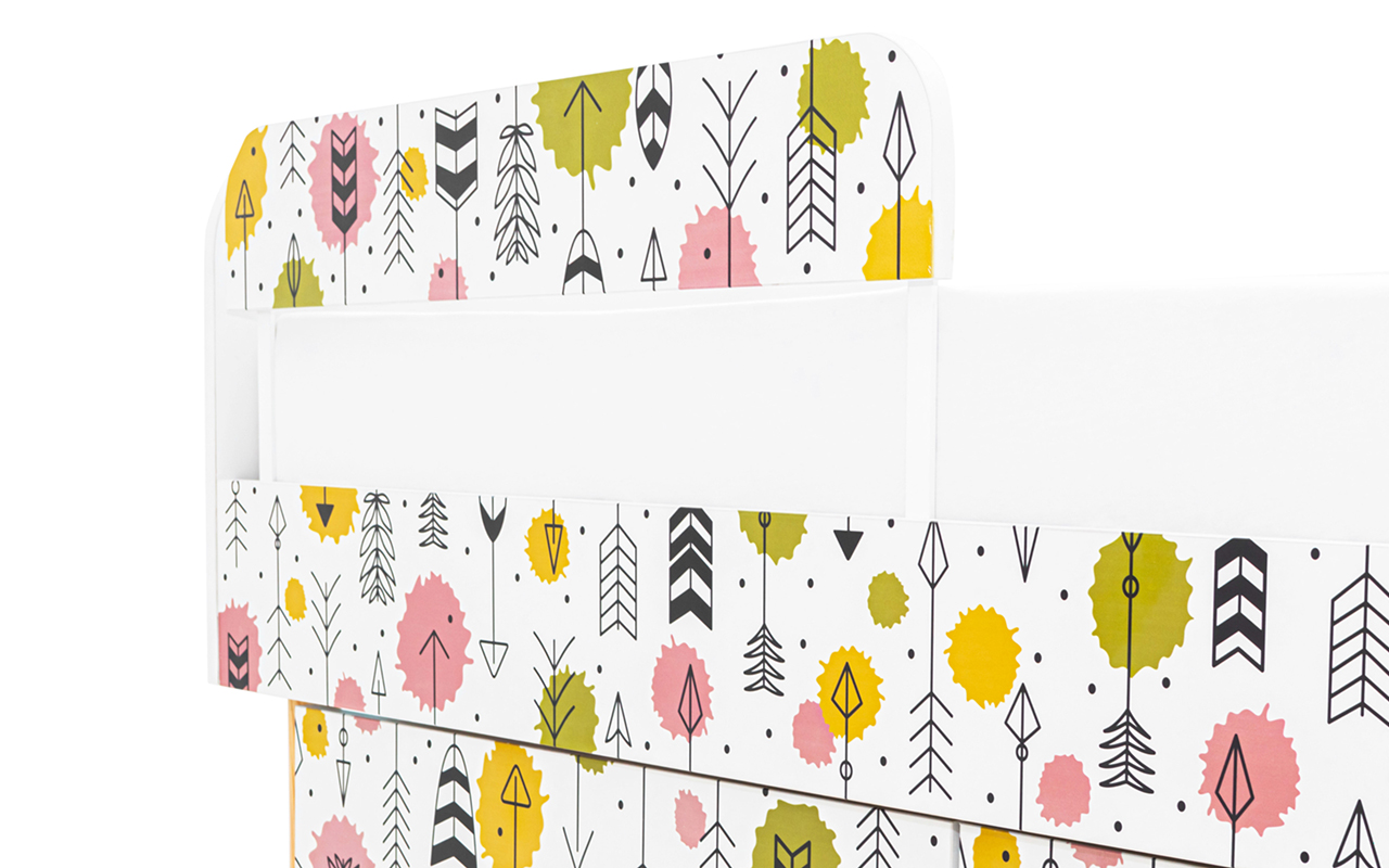 Бортик выполнен из ЛДСП класса Е1. На поверхность нанесен оригинальный рисунок ультрафиолетовыми высококачественными чернилами. Рисунок, нанесенный с помощью фотопечати устойчив к истиранию. Все материалы экологичны и безопасны. Крепежи из металла.