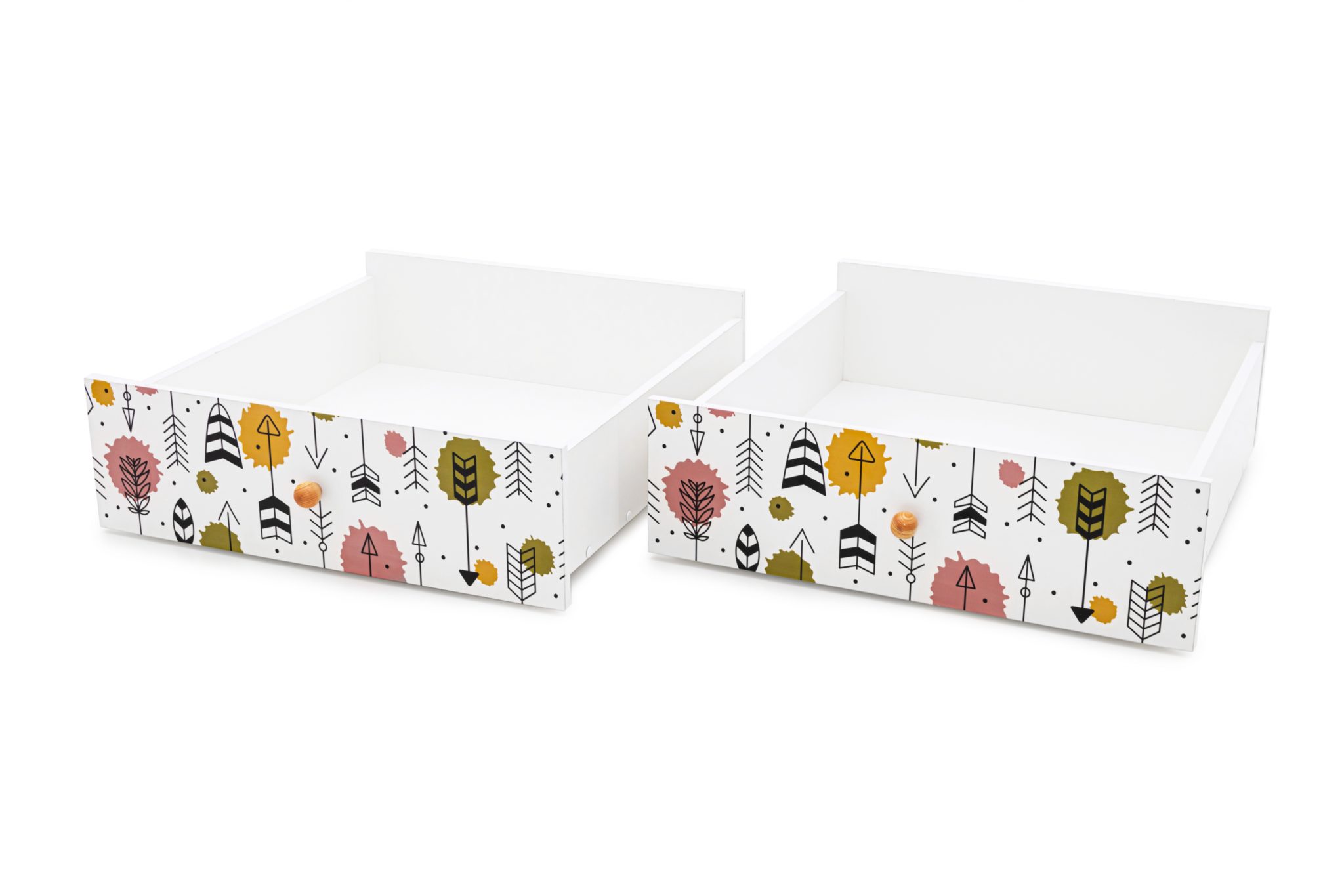 Ящики на колесиках удобны, когда нужно помыть полы под кроваткой или переставить ее с легкостью на другое место. Ребенок сможет самостоятельно при необходимости выдвинуть и задвинуть ящик. Ящик объемом 0,6 куб.м. отлично подойдёт для хранения постельного белья, игрушек и других вещей. Большой выбор фотопечати на фасадах ящика позволят создать свою идеальную кровать.